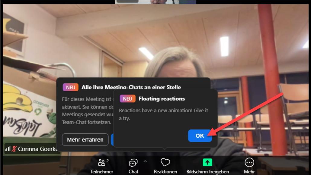 Klicken sie hierzu unten links auf das Mikrofon-Symbol um ihr Mikrofon ein- bzw. wieder auszuschalten (3).